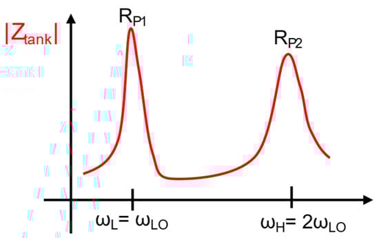 This design also features inverse class-F DCO with a tightly coupled primary transformer with optimal coupling co-efficient k = 0.6, tuned to fundamental and second harmonic frequency. Figure 13 shows the simplified schematic of inverse class-F DCO, and Figure 14 shows the representative impedance vs. frequency plot. The frequency alignment avoids the need for independent tuning for fundamental and second-harmonic using multiple capacitor banks, reducing the complexity. Coarse frequency tuning is implemented on both primary and secondary coils. Fine-tuning and delta-sigma modulation (ΔΣ) are confined to the secondary coil, simplifying the layout, and maintaining performance.