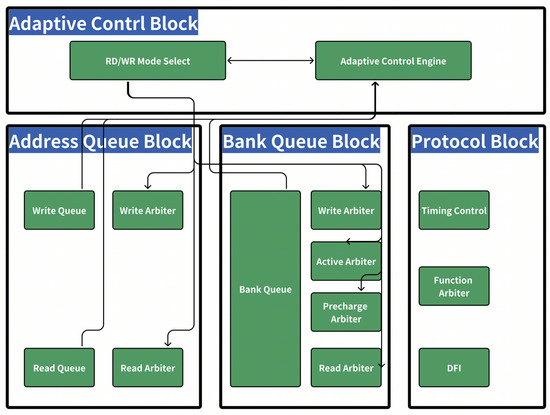 To address the read and write switching penalty, we employed the read–write mode arbiter in both the Address Queue and Bank Queue, taking into account rank-level parallelism.