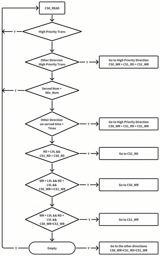 The intention of the read–write mode arbiter is to ensure that switching does not occur too frequently. When switching occurs, it must follow the diagram below in Figure 6. The read/write swiching methodology is generally based on the following considerations.