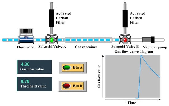 Hao et al. [21] employed an electronic nose to analyze VOCs in breathed gas for lung cancer detection. In their study, subjects exhaled into a Tedlar bag. Since no exogenous VOCs in the physiological dead space were removed, the concentration of the targeted gas components was significantly reduced. To reduce the effects of dead space gases, Castellanos and Capuano et al. [22,23] proposed that subjects should first exhale part of the gas into the surrounding air and then exhale the remaining gas into the Tedlar bag [24]. This approach relies on subjective experience to remove dead space gas, which results in low efficiency and large errors. Grabowska-Polanowska and Mieth et al. [25,26,27] proposed using a carbon dioxide (CO2) sensor to differentiate and exclude dead space gases. However, water vapor in human exhaled gas can significantly impair the CO2 sensor’s detection accuracy. Additionally, squeezing the Tedlar bag is the conventional method of introducing the gas into the sensor chamber during the detection procedure. Different squeezing methods and strengths typically result in the issue of uncontrollable airflow [28]. Some studies have managed to control airflow by redesigning the chamber structure and introducing devices such as vacuum pumps. These solutions are complex and require frequent adjustments. Therefore, there is a pressing need to improve the system structure design and control mechanisms of traditional electronic nose systems.