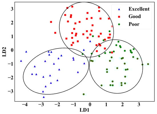 The distribution of the data after LDA dimensionality reduction is shown in Figure 8. The complexity of the data is reduced while the most discriminative features are extracted. The dimensionality-reduced data are then fed into the classification model for classification.