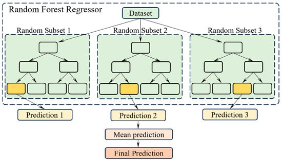 Random forest regression is a special type of bagging which improves upon the predictive performance of conventional bagging models. Unlike earlier bagging techniques, the RFR model restricts the features to consider at any split point, in order to minimize the correlations across the data samples. This number of features “m” is taken as √p as a rule of thumb, if p is the number of model parameters. Compared to other ensemble techniques, RFR has the advantages of diversity, reduced dimensions per weak learner model, and computing optimization through parallel processing. The important hyperparameters are the number of decision trees, the number of features at the split node, and the minimum number of leaves to consider splitting. The steps involved in RFR modelling are as follows: