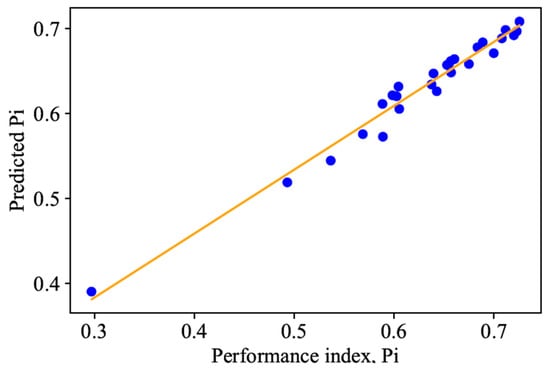 The method only ranks the parameter combinations within the dataset considered. Evaluating the performance of any parameter combinations outside the considered dataset can be made possible by modelling the performance indicator Pi using RFR. An R2 value of 0.947 is obtained, and the results are plotted as shown in Table 8.