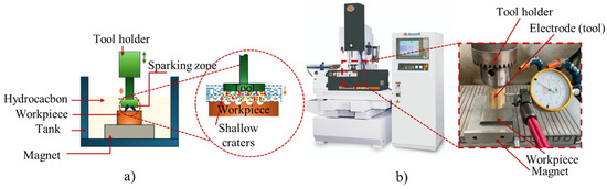 - Hadad, M.; Bui, L.Q.; Nguyen, C.T. Experimental investigation of the effects of tool initial surface roughness on the electrical discharge machining (EDM) performance. Int. J. Adv. Manuf. Technol. 2018, 95, 2093–2104. [Google Scholar] [CrossRef]