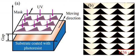 In the 1980s, Chen et al. proposed moving-mask lithography to fabricate elements with a continuous surface and a single-hole patterned mask [18]. In 2014, Nobuhiro et al. proposed the use of moving-mask lithography for fabricating 3D microstructure molding [19].