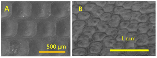 SEM image of (A) Thorlabs convex MLA and (B) fabricated 100 µm convex MLAs using picosecond and CO2 laser melting.