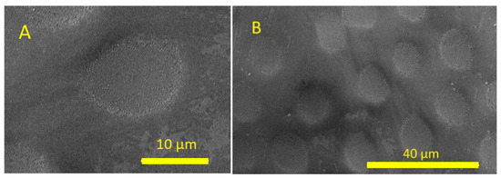 We obtained the commercially available Thorlabs (MLA150-7AR) convex MLAs with 150 µm diameter microlenses with an anti-reflection coating (ARC). The SEM image of the Thorlabs MLA is shown in Figure 15A. The lens was a Fresnel microlens showing concentric rings. Its measured optical transmission efficiency was 91.8%. We fabricated 100 µm size convex lenses using a picosecond and CO2 laser, shown in Figure 15B. The measured beam profile for the Thorlabs MLA and the fabricated one are shown in Figure 16.