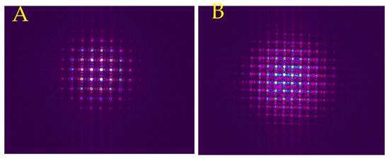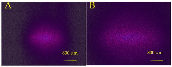Experimentally measured beam profile after passing through the sapphire concave MLAs at (A) 5 mm and (B) 10 mm from the surface.
