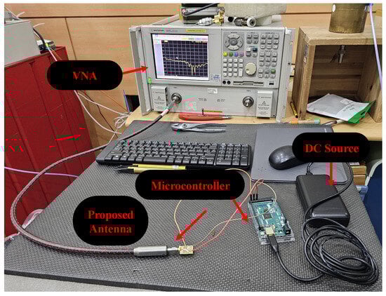 Figure 5 illustrates the fabricated prototype of the proposed reconfigurable antenna under test conditions for return loss results. The measurement setup consists of four major parts: