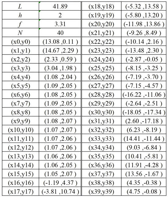 The parameters are defined as follows: L represents the length of the antenna, h denotes the thickness of the patch, f specifies the position of the feed probe, and are the Cartesian coordinates of the i-th vertex of the polygon, ordered by their angular positions. Consequently, each individual p is a vector in , and the entire population P constitutes a matrix in , where N is the population size.