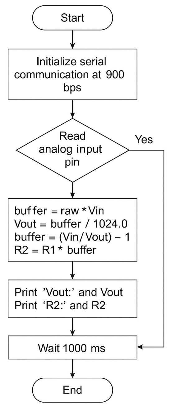 Logical flowchart of the Variable Resistance Measurement Program code used to perform variable resistance measurements through Arduino.