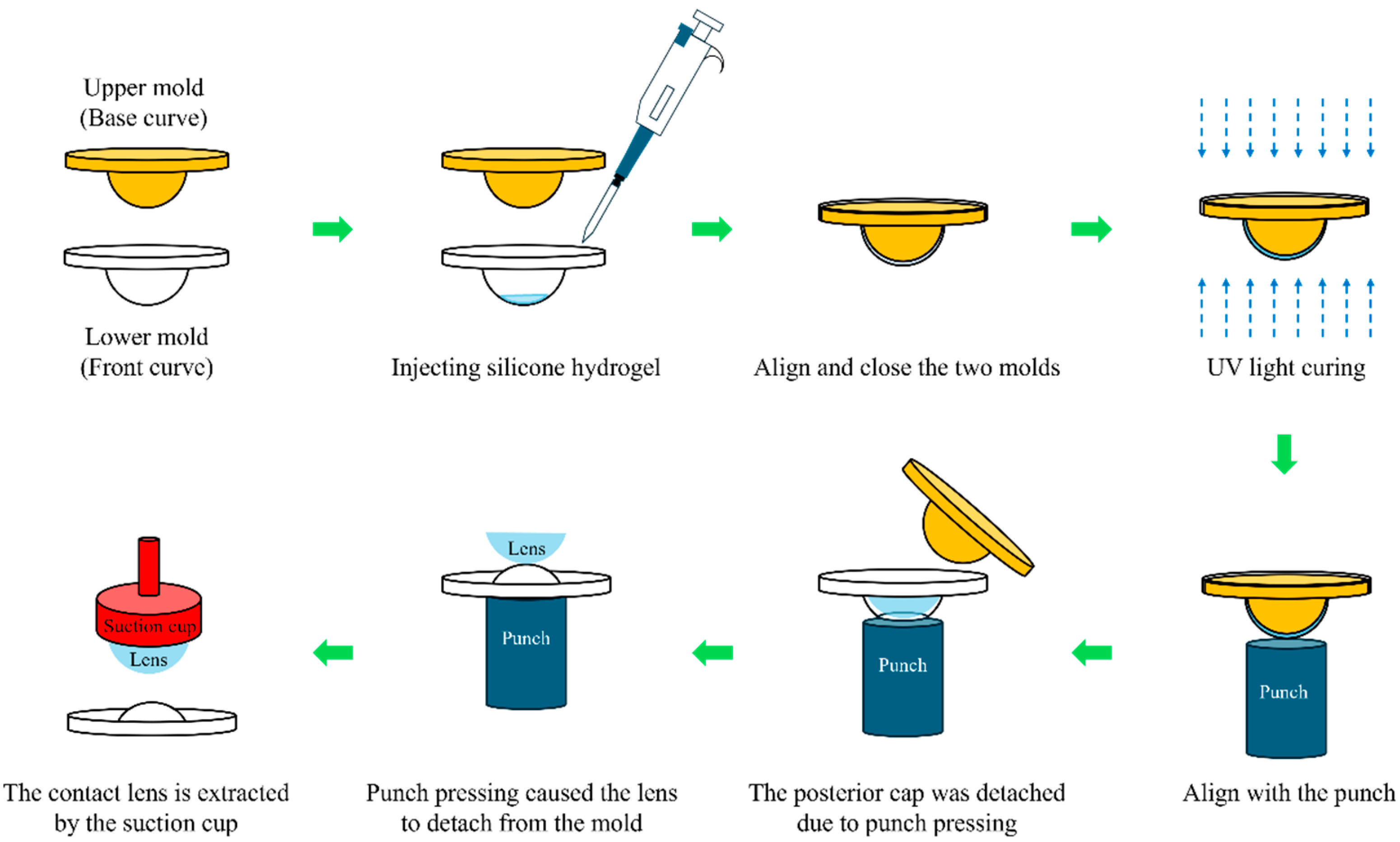 Cheng, C.-M.; Cho, Y.-S.; Cheng, T.-F.; Wang, J.-Y.; Huang, J.-J. Effect of Punch Geometry on Stress and Strain Distribution During Contact Lens Demolding. Micromachines 2026, 17, 10. https://doi.org/10.3390/mi17010010