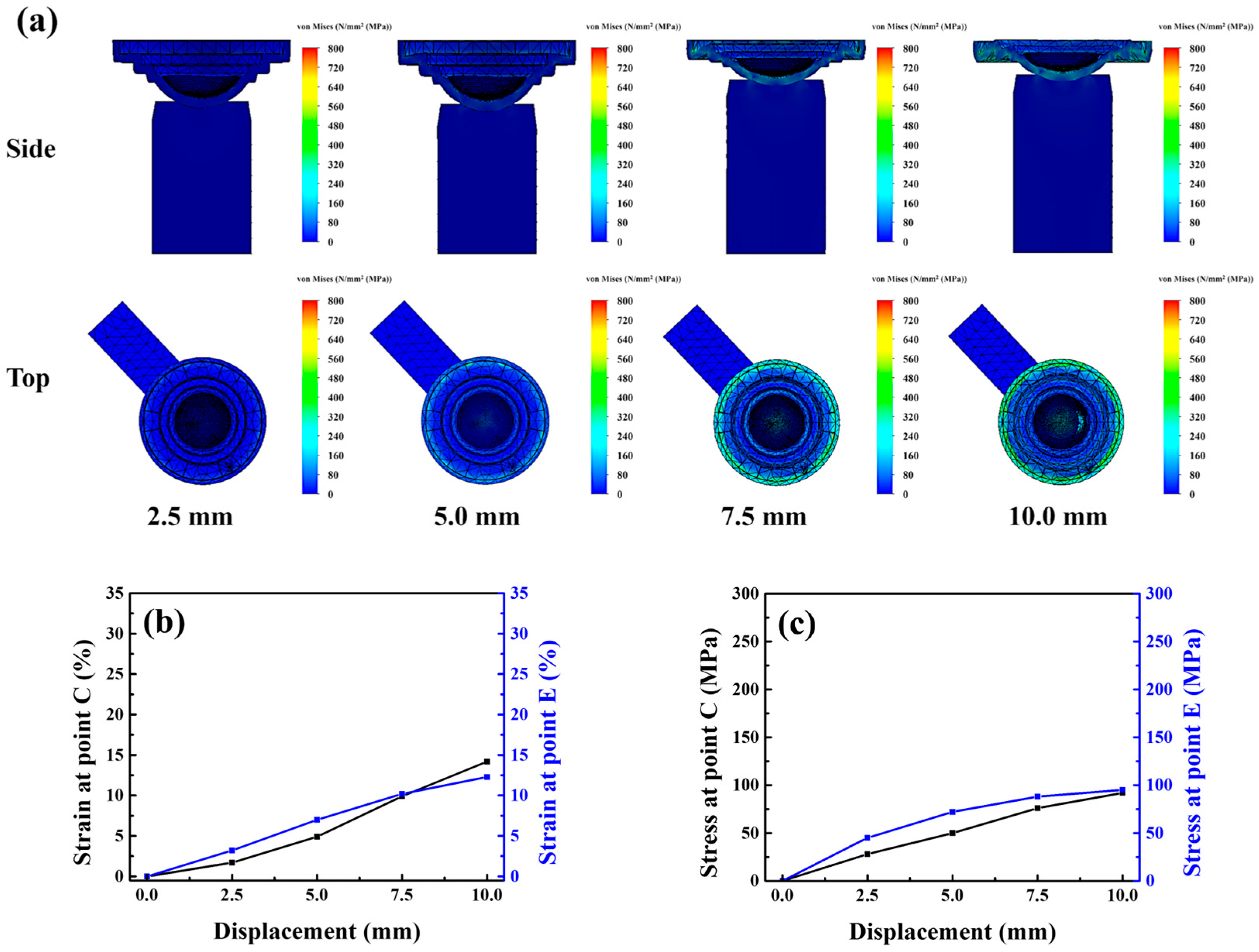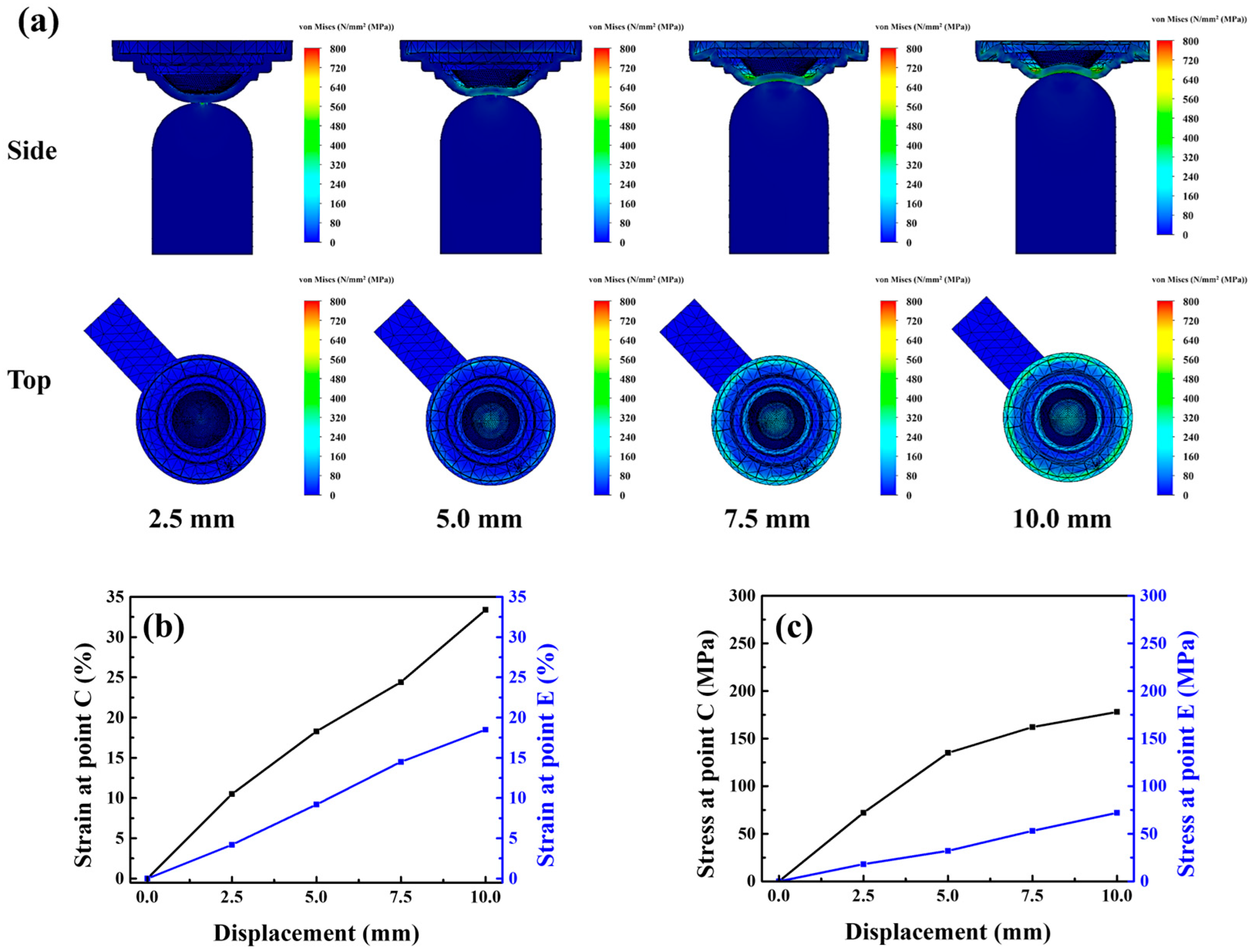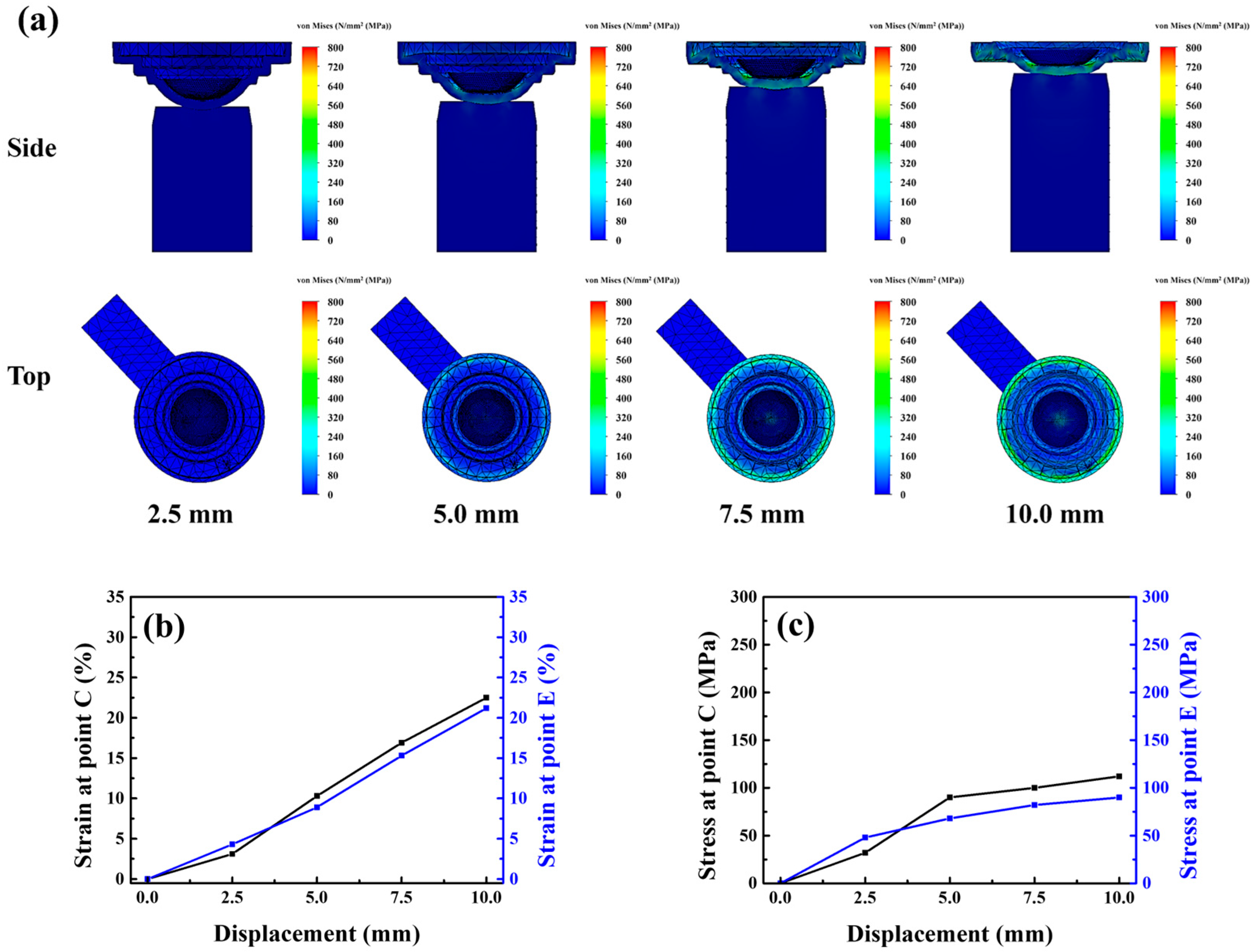 | Punch pin (304L stainless steel) | 193 GPa | 0.29 | 8 g/cm3 |
