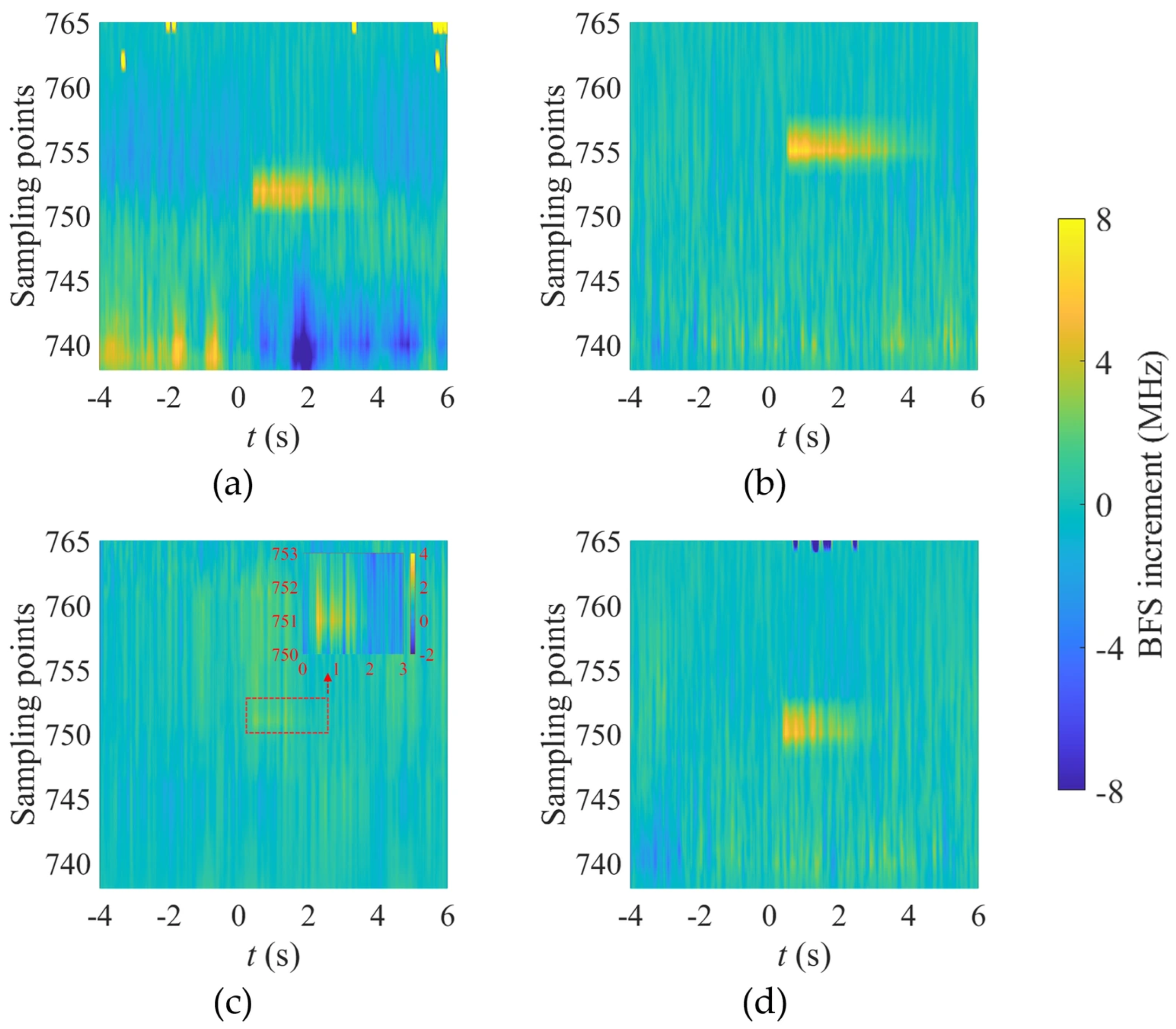 4.1. Characteristics of the BFS Along the Optical Fiber