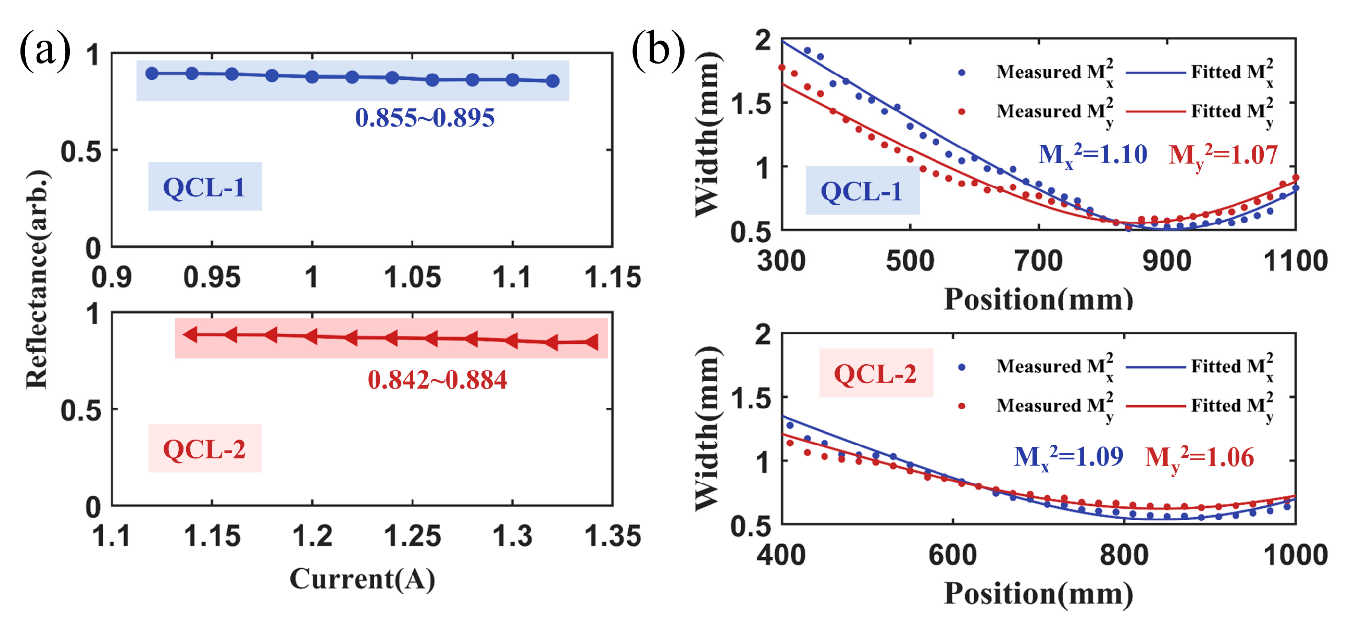 M2 of the reflected beams. For QCL-1, the
