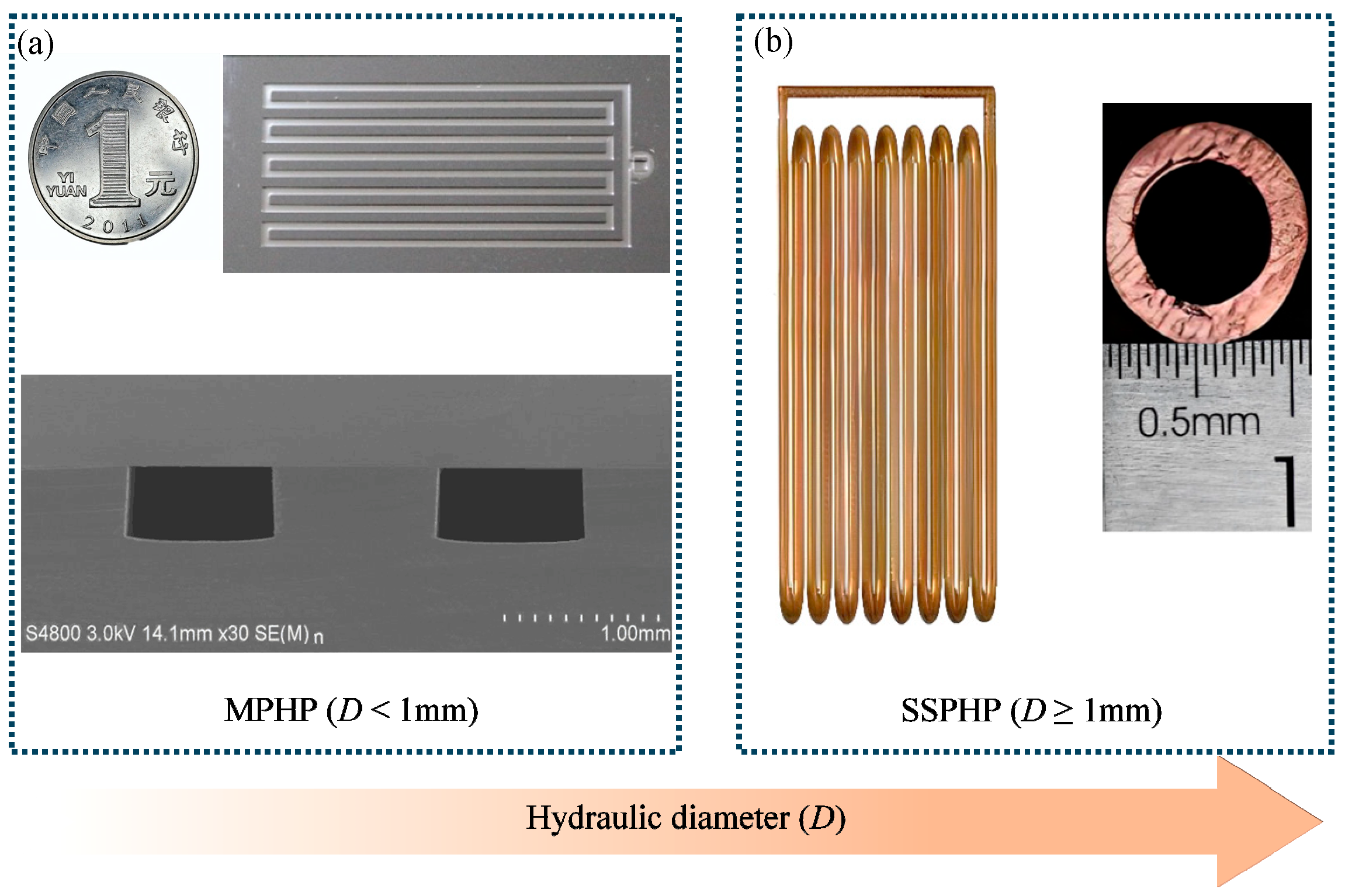 Figure 1. Size classification basis of PHP: (a) MPHP; (b) SSPHP.