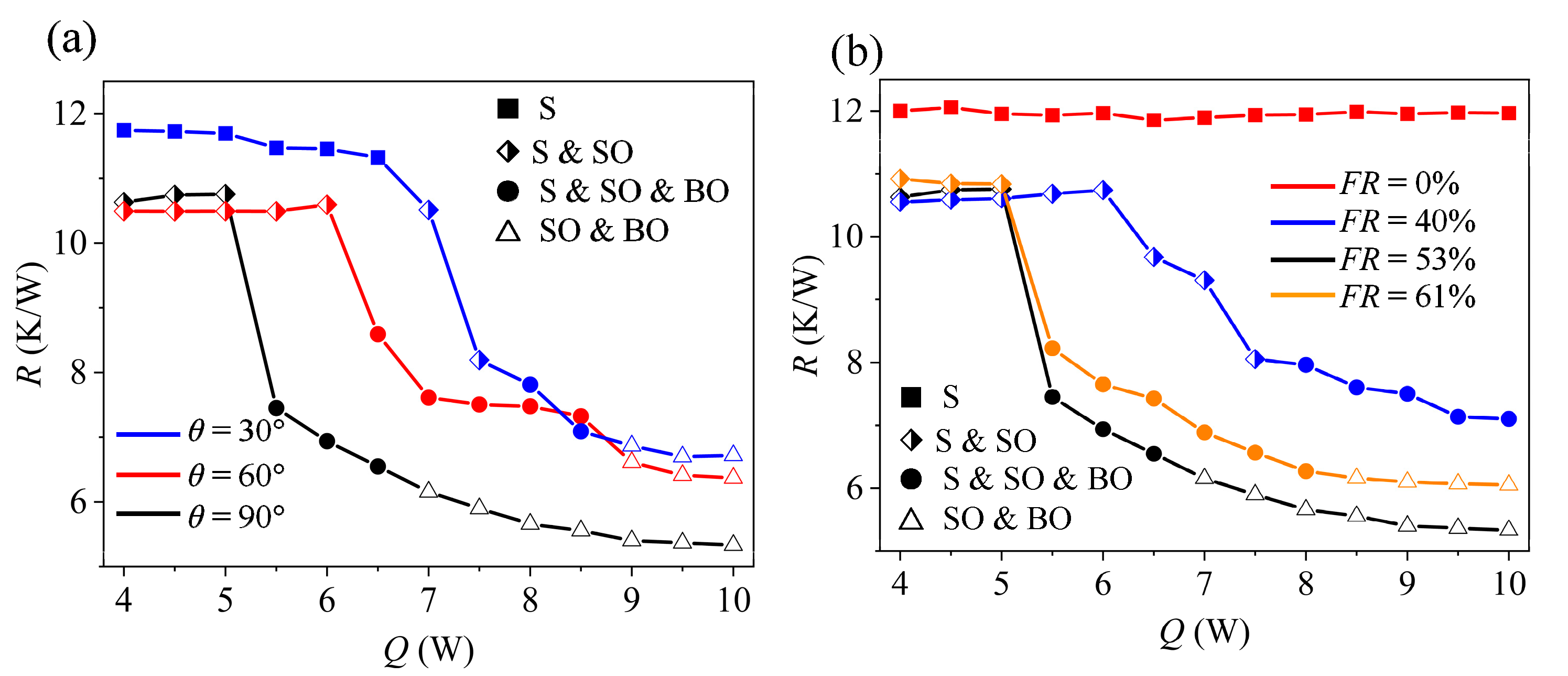 Figure 13. Thermal resistance under different operating conditions: (a) inclination angle; (b) fill ratio [28].