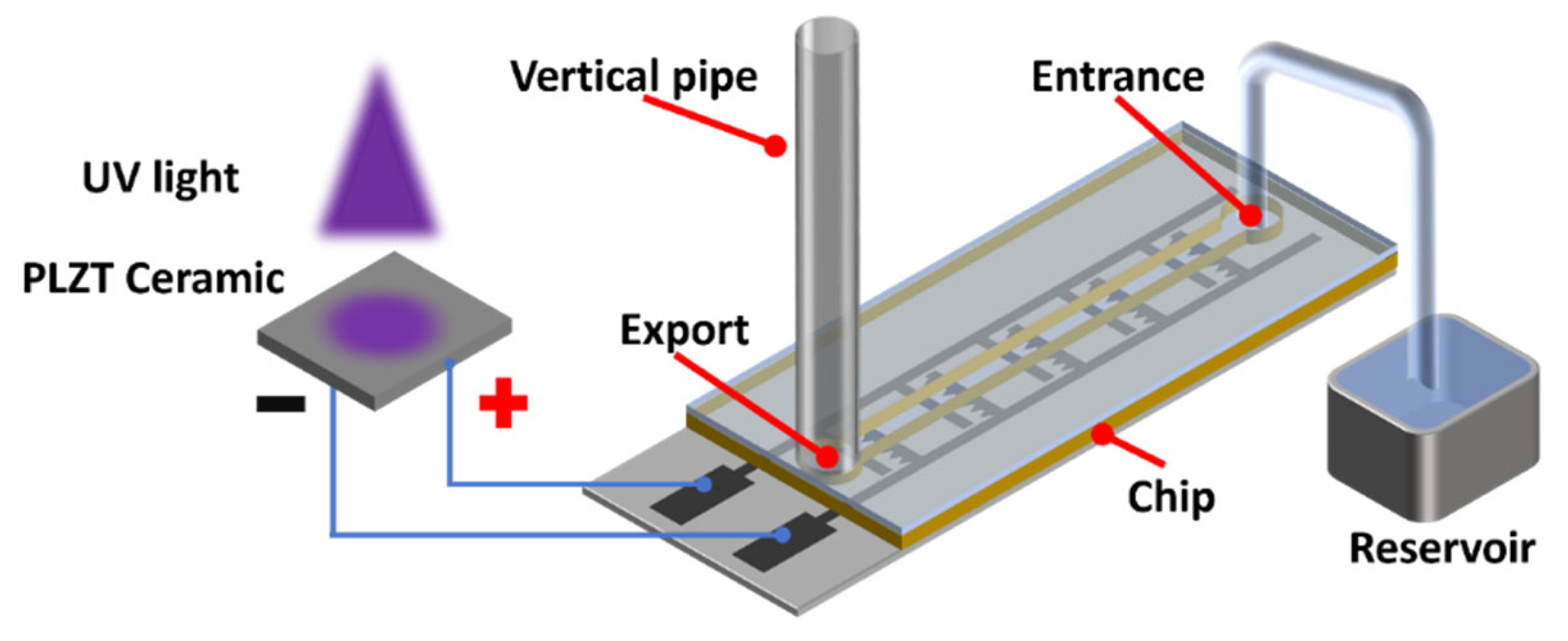 15], suggesting great potential for clean, light-driven micro-systems. Thus, the rapid photovoltage generated by PLZT ceramics under illumination can provide energy for injection pumps, thereby enabling light-controlled pumping of fluids.