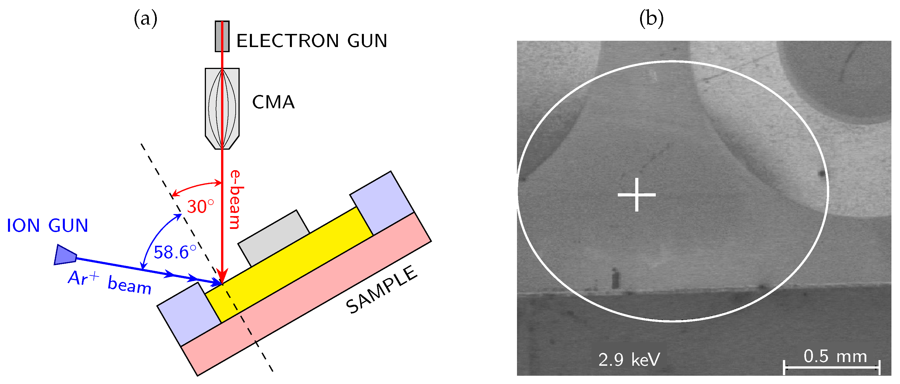 - Martinez, E.; Yadav, P.; Bouttemy, M.; Renault, O.; Borowik, Ł.; Bertin, F.; Etcheberry, A.; Chabli, A. Scanning Auger microscopy for high lateral and depth elemental sensitivity. J. Electron Spectrosc. Relat. Phenom. 2013, 191, 86–91. [Google Scholar] [CrossRef]