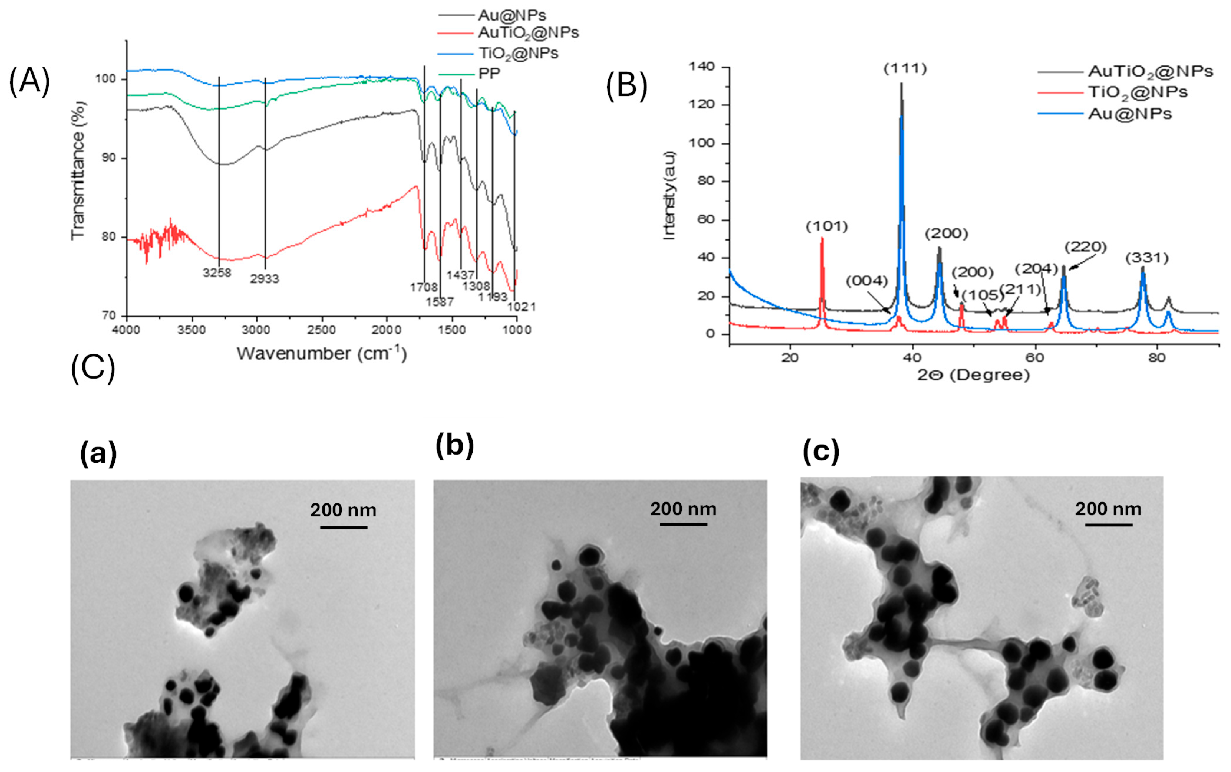 2.3.4. Synthesis of Gold-Supported Titanium Dioxide Nanoparticles (AuTiO2@NPs)