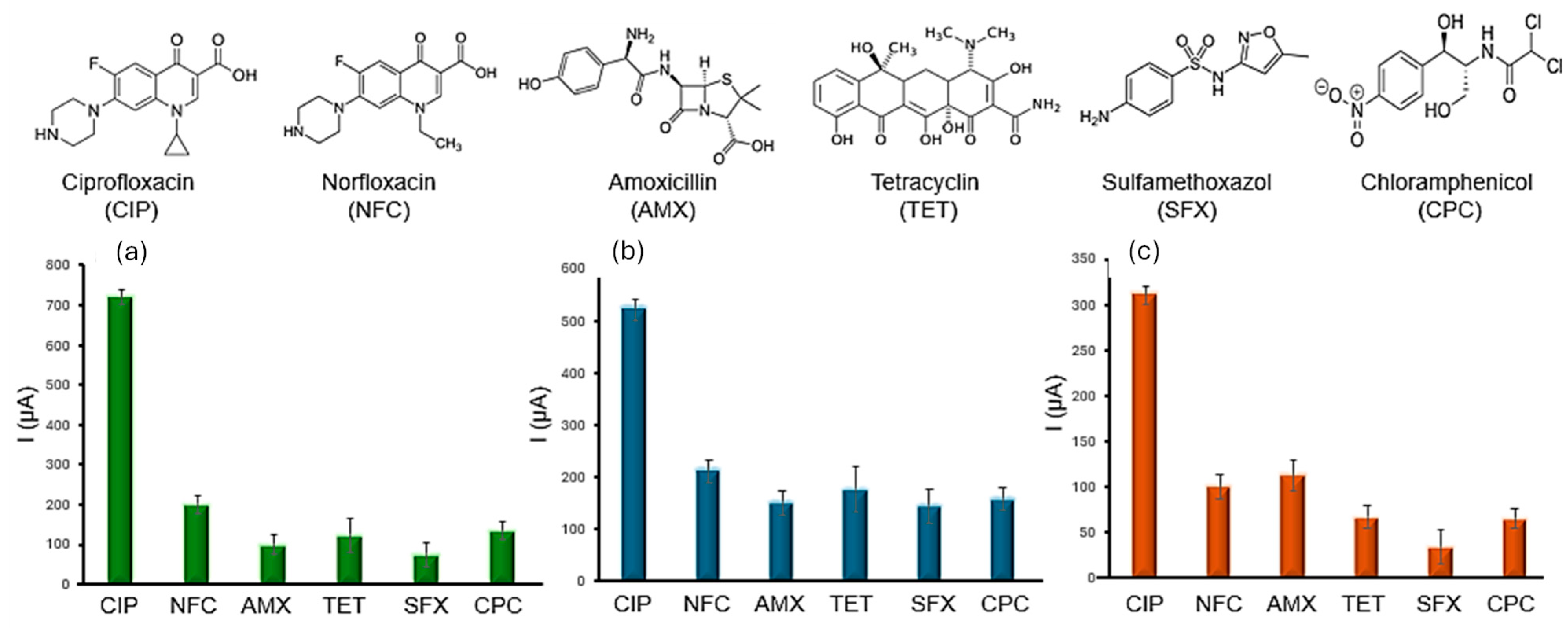 - Mǎgeruşan, L.; Pogǎcean, F.; Cozar, B.I.; Tripon, S.C.; Pruneanu, S. Harnessing Graphene-Modified Electrode Sensitivity for Enhanced Ciprofloxacin Detection. Int. J. Mol. Sci. 2024, 25, 3691. [Google Scholar] [CrossRef]