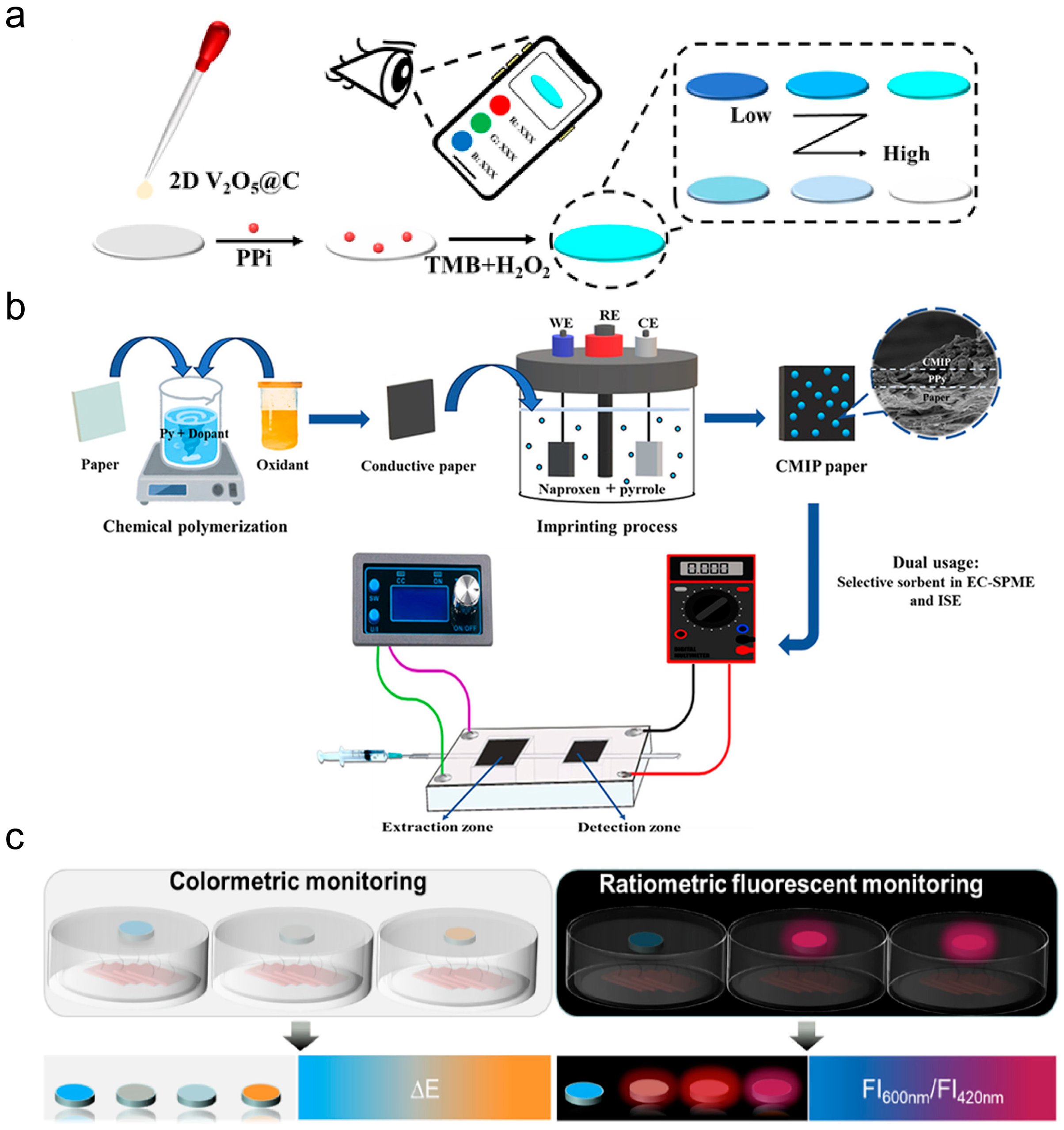 - Li, H.; Zhao, S.; Wang, Z.; Li, F. Engineering a two-dimensional metal-carbon nanozyme-based portable paper-based colorimetric chip for onsite and visual analysis of pyrophosphate. Talanta 2024, 278, 126490. [Google Scholar] [CrossRef]
