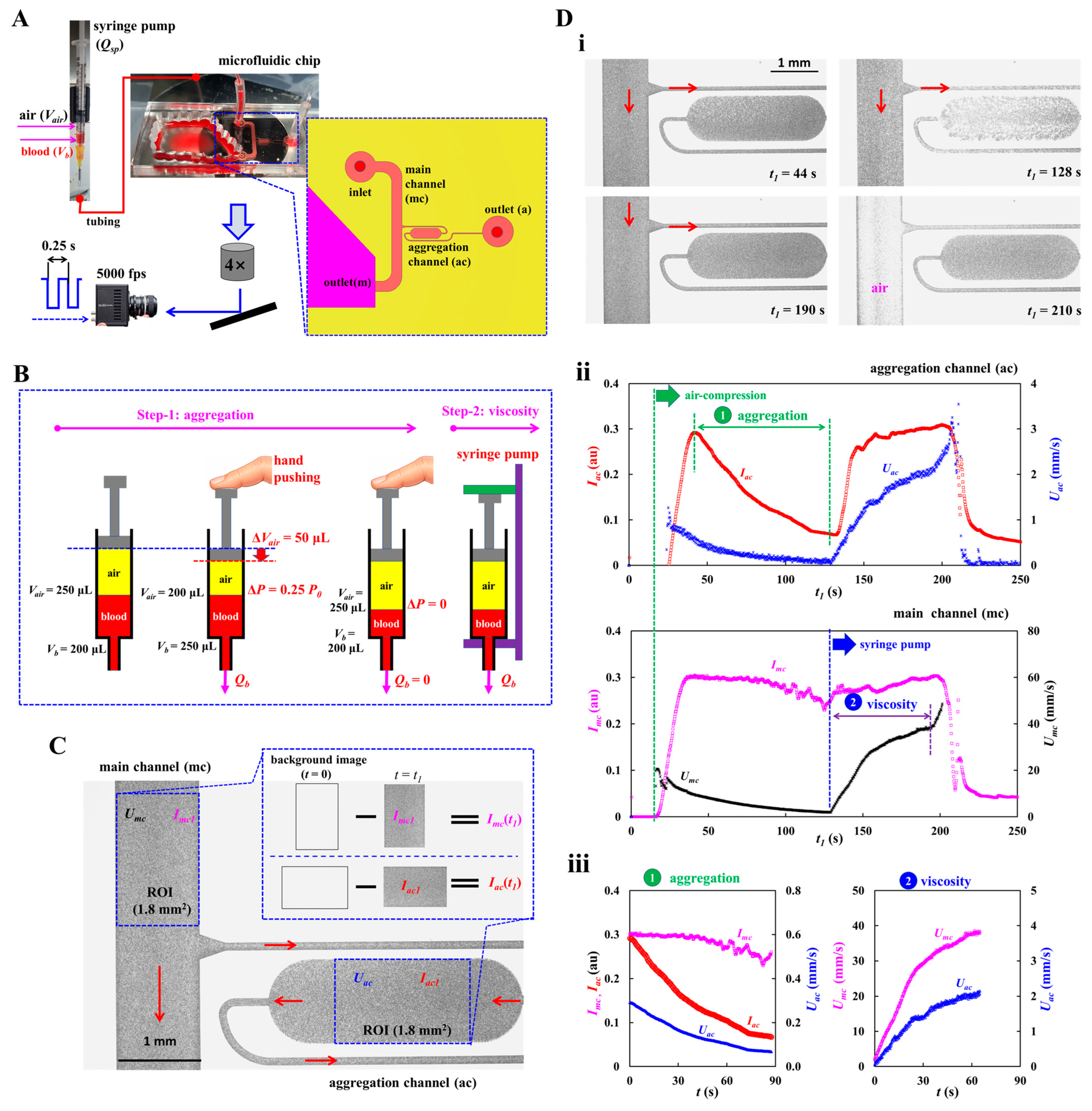 - Kang, Y.J. Periodic and simultaneous quantification of blood viscosity and red blood cell aggregation using a microfluidic platform under in-vitro closed-loop circulation. Biomicrofluidics 2018, 12, 024116. [Google Scholar] [CrossRef] [PubMed]