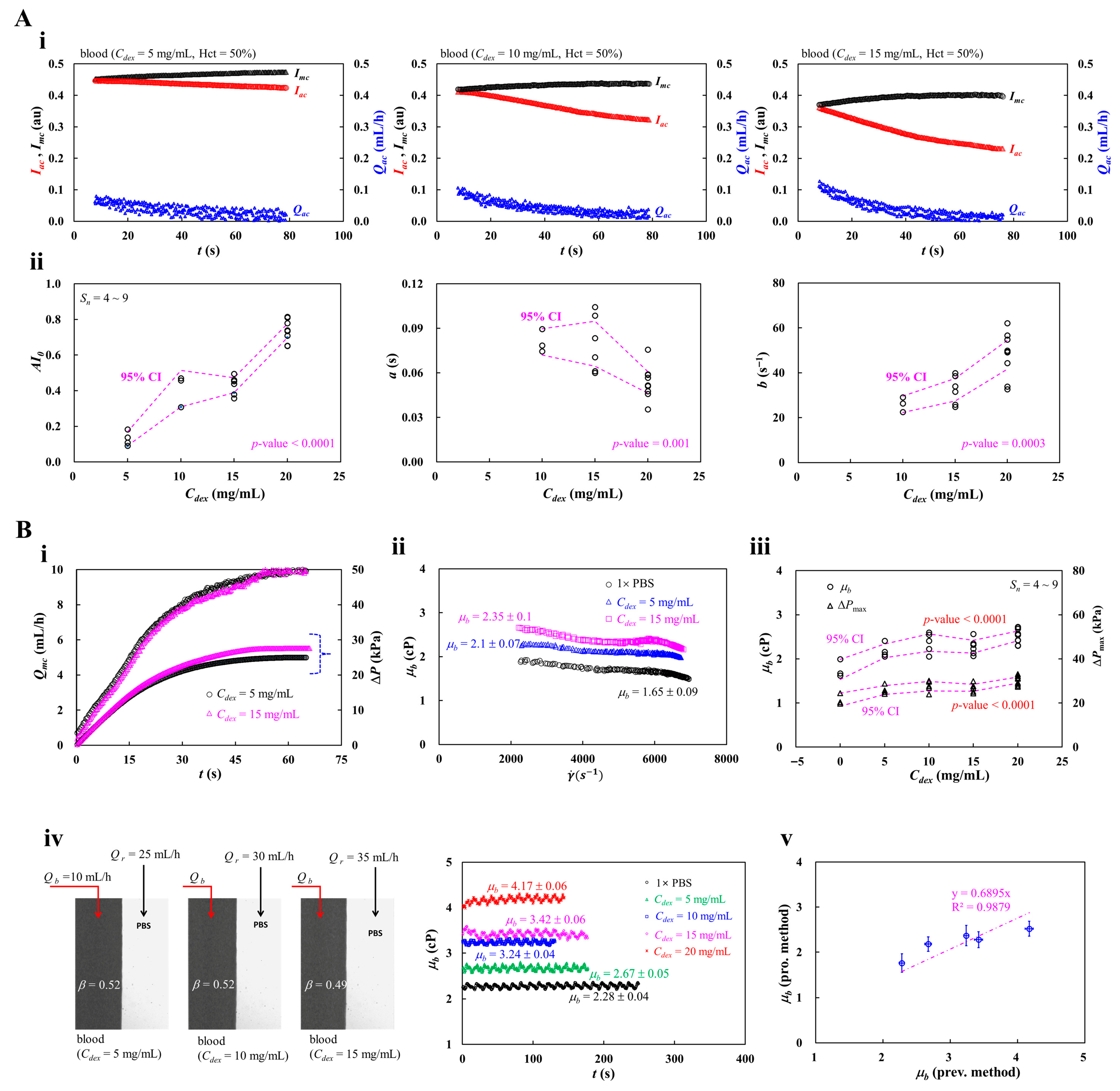 3.5. Contribution of Blood Medium (Dextran Concentration)