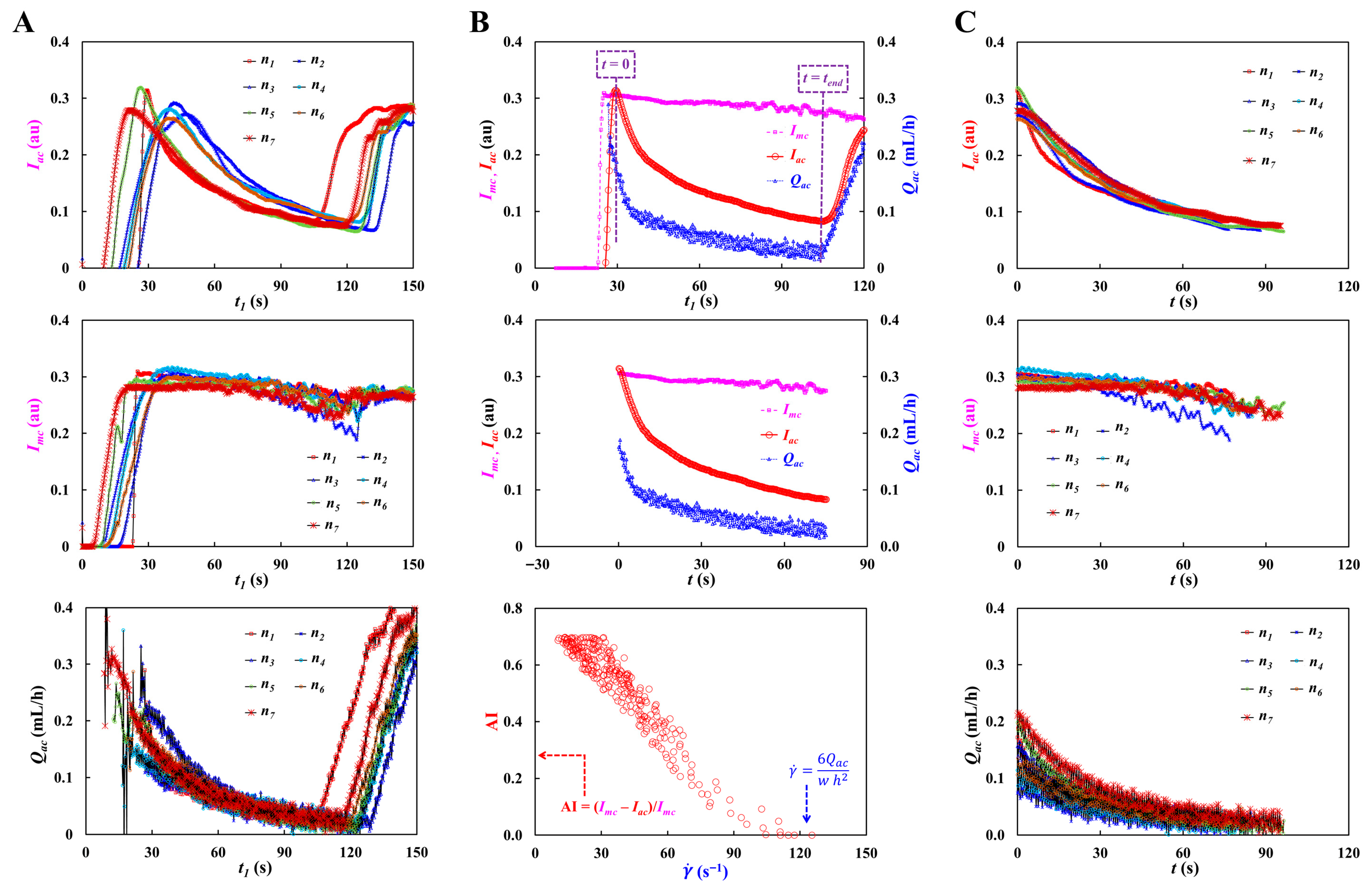2.2. Quantification of Image Intensity and Blood Flow Rate in Main and Aggregation Channels
