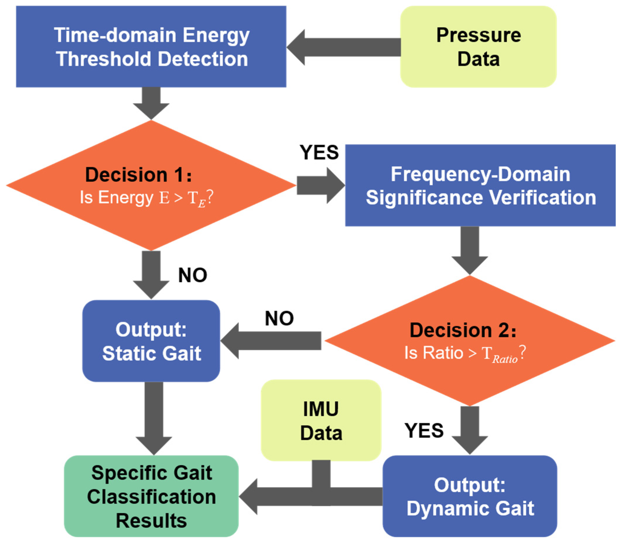 - In the primary stage, utilizing the Time-Domain Energy and Frequency-Domain Significance of plantar pressure signals, a dual-threshold mechanism efficiently decouples static postures from dynamic gaits. This effectively solves the misjudgment problem caused by zero-bias drift in traditional inertial algorithms during standstill and reduces the computational burden.