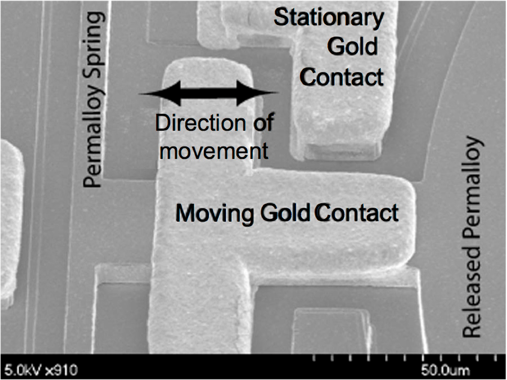 | Features | Single Pole, 4 Throw Ohmic switch Electrostatic actuation 50 V actuation voltage | Single Pole, Single Throw Ohmic switch Electrothermal actuation 2.5–3.5 V actuation voltage |