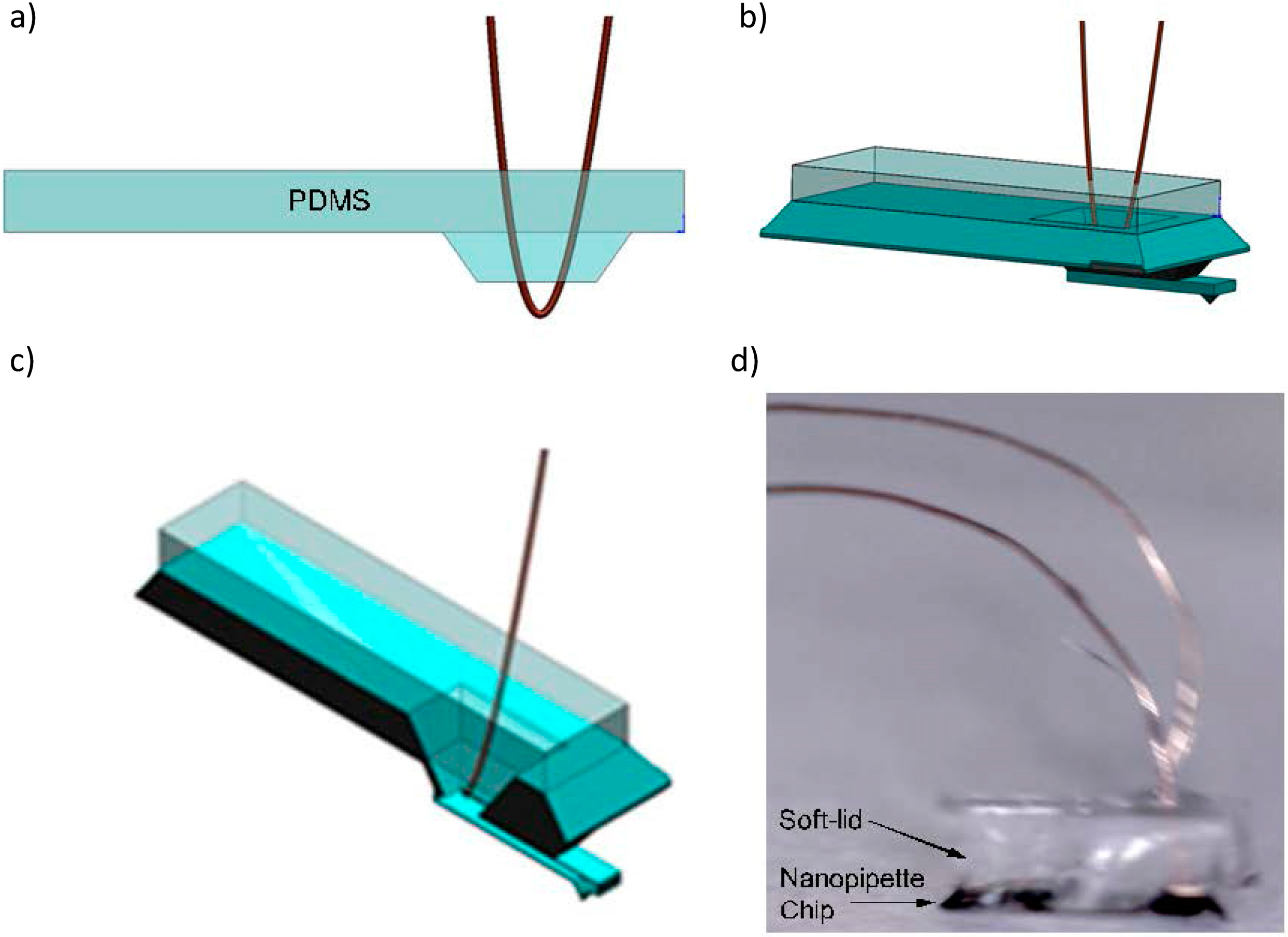 For the devices where an electric field was applied to the tip, i.e., Bioplume, electro-active loading was used. A DC voltage applied between the liquid to be loaded and the electrode on the cantilever resulted in liquid flow into the cantilever. Such method was also used to aspirate liquids [90].