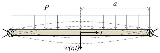 - Weiner, R.S. Forced Axisymmetric Motions of Circular Elastic Plates. J. Appl. Mech. 1965, 65, 893–898. [Google Scholar] [CrossRef]