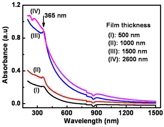 Optical absorbance spectra of porous ZnO porous film with different thicknesses. Reproduced with permission from [43].