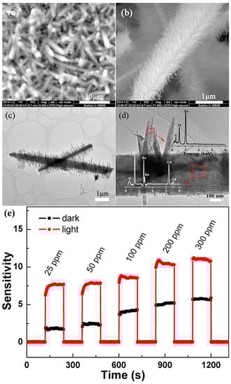 - Park, S.; Kim, S.; Ko, H.; Lee, C. Light Assisted Room Temperature Ethanol Gas Sensing of ZnO–ZnS Nanowires. J. Nanosci. Nanotechnol. 2014, 14, 9025–9028. [Google Scholar] [CrossRef] [PubMed]