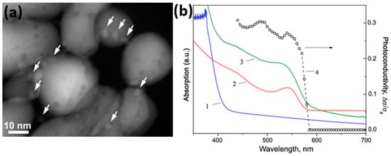 - Chizhov, A.S.; Rumyantseva, M.N.; Vasiliev, R.B.; Filatova, D.G.; Drozdov, K.A.; Krylov, I.V.; Abakumov, A.M.; Gaskov, A.M. Visible light activated room temperature gas sensors based on nanocrystalline ZnO sensitized with CdSe quantum dots. Sens. Actuator B 2014, 205, 305–312. [Google Scholar] [CrossRef]