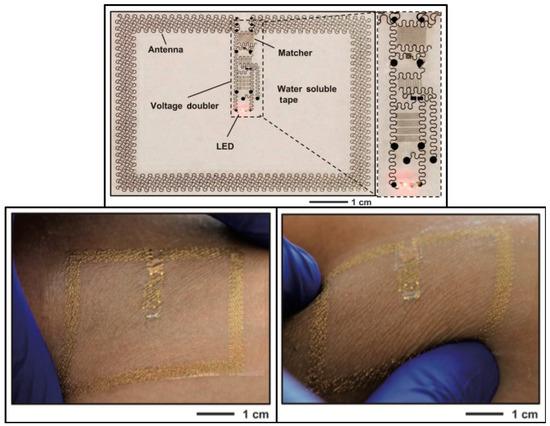 - Huang, X.; Liu, Y.; Kong, G.W.; Seo, J.H.; Ma, Y.; Jang, K.-I.; Fan, J.A.; Mao, S.; Chen, Q.; Li, D.; et al. Epidermal radio frequency electronics for wireless power transfer. Microsyst. Nanoeng. 2016, 2, 16052. [Google Scholar] [CrossRef]
