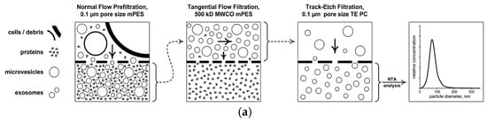- Heinemann, M.L.; Ilmer, M.; Silva, L.P.; Hawke, D.H.; Recio, A.; Vorontsova, M.A.; Alt, E.; Vykoukal, J. Benchtop isolation and characterization of functional exosomes by sequential filtration. J. Chromatogr. A 2014, 1371, 125–135. [Google Scholar] [CrossRef] [PubMed]