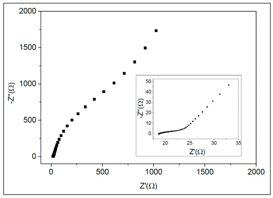 Nyquist plot of the micro-SC. The impedances were measured at a bias of 0.1 V, at frequencies from 20 Hz to 10 kHz.