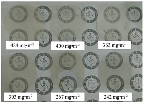 Photos of AgNWs-PET films with different silver nanowires volumes.
