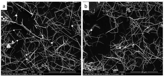 Until now, many approaches used to prepare silver nanowires networks have been presented including vacuum filtration, the drop-cast method, Meyer rod coating, and the transfer-printing technique [,,,,,,,,,]. However, it is very difficult to achieve a high quality film with low sheet resistance, high optical transmittance, and good adhesion between the nanowires and substrate surface at the same time. Vacuum filtration method is a commonly-used process in film production, which affords films with some advantages such as surface uniformity, controllable thickness, and reproducibility. To fabricate the flexible transparent conductive film, AgNWs networks usually are transferred to a transparent substrate after being deposited on the mixed cellulose ester film; this constitutes the vacuum filtration-transferring process. Moreover, it is very easy to generate cracks and other adverse defects during the transferring process from mixed cellulose ester to polyethylene terephthalate (PET).