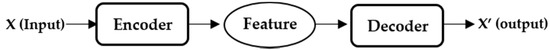AE belongs to one of the unsupervised learning algorithms. It is a neural network that aims to produce an output of X’ similar to the input data of X. In other words, AEs are composed of encoding (compression) and decoding (recovery), so data reconstruction is the purpose of AEs. Figure 1 shows the simple structure of the AE.