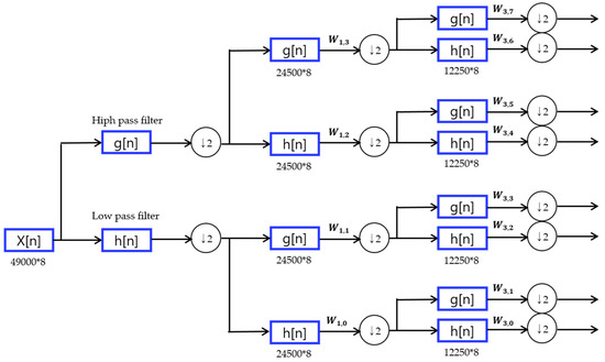 in which is the scaling function and is the wavelet function. In this paper, , and are used for input. Figure 5 shows the method of decomposition based on wavelet packets.