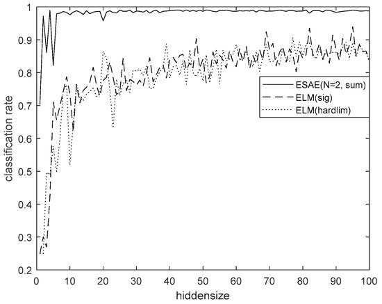 The softmax classifier provides us with the probabilities for each class label. It is more convenient for humans to interpret probabilities rather than margin scores of an SVM. The ESAE is constructed by building multiple SAE. By combining the probability values of the classifiers, an ensemble form is created. Thus, we could improve the classification performance by changing the structure. The softmax classifier is defined by Equation (16).