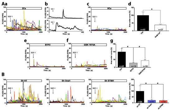 2.1. SDF-1 Induces Ca2+ Responses Involving Orai1/STIM1-Dependent Ca2+ Entry