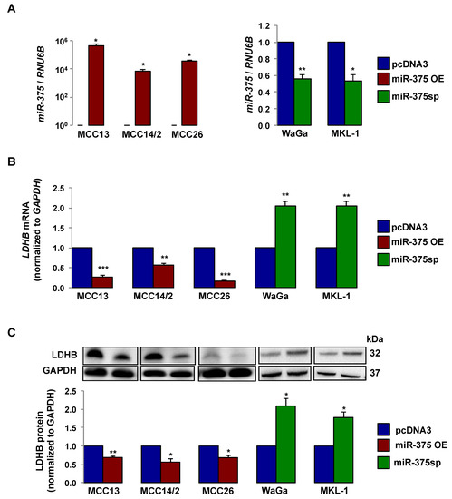 2.2. miR-375 Regulates LDHB Expression in MCC Cells
