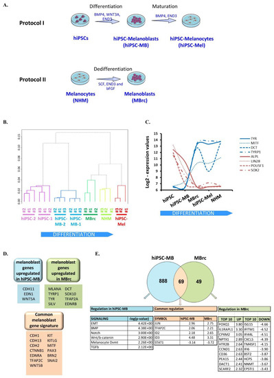 In this study, we generated human melanoblasts either by dedifferentiation of mature melanocytes or differentiation of pluripotent stem cells [15,16,17,18]. We describe how transcriptomic data from human melanoblasts could help to better understand drug resistance features of melanoma cells.