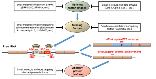 - Salton, M.; Misteli, T. Small Molecule Modulators of Pre-mRNA Splicing in Cancer Therapy. Trends Mol. Med. 2016, 22, 28–37. [Google Scholar] [CrossRef] [PubMed]