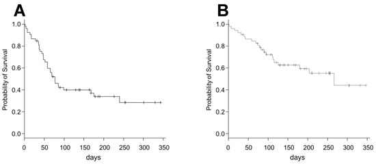 Survival curves after treatment with nivolumab in all patients: (A) progression-free survival; and (B) overall survival.