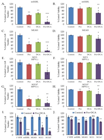 2.4. The Combination of Propranolol and DCA Synergizes for Significant Anti-Cancer Activity in HNSCC, But Has Little Effect on Primary Tonsil Epithelial Cells.